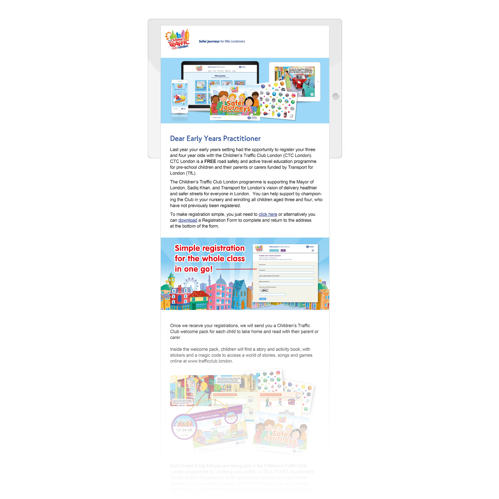 The Children's Traffic Club London. An active travel and road safety educational programme. Transport for London wanted to base an educational road safety programme on our original Children's Traffic Club. Available to all 3-4 year olds FREE in London.