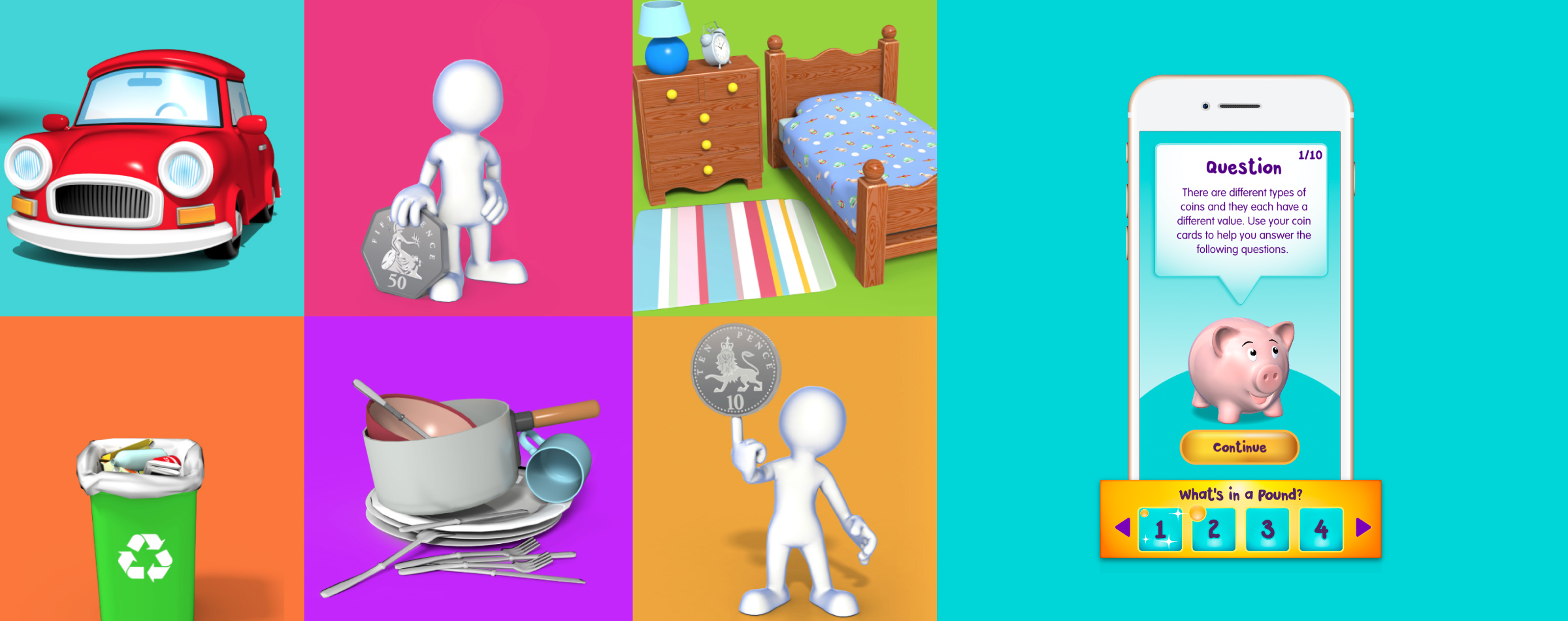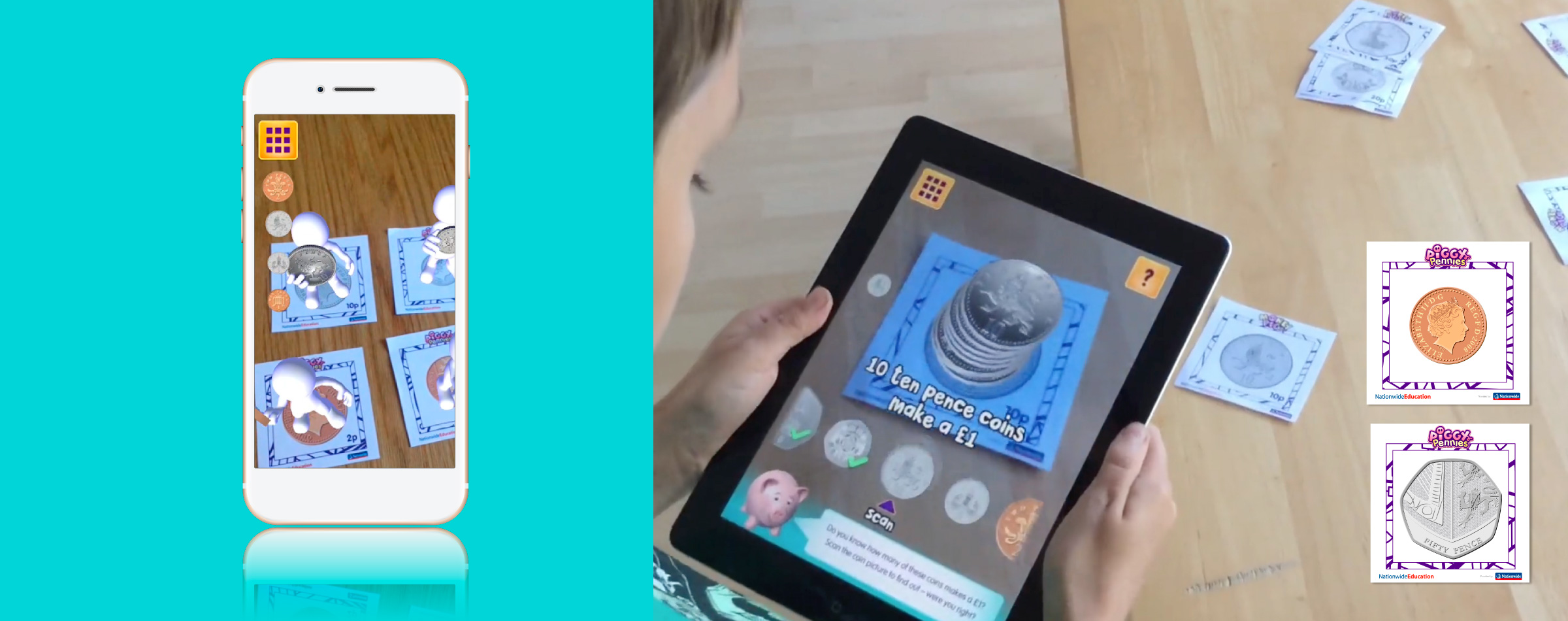 Teaching primary aged children about coin recognition, counting and saving through AR.