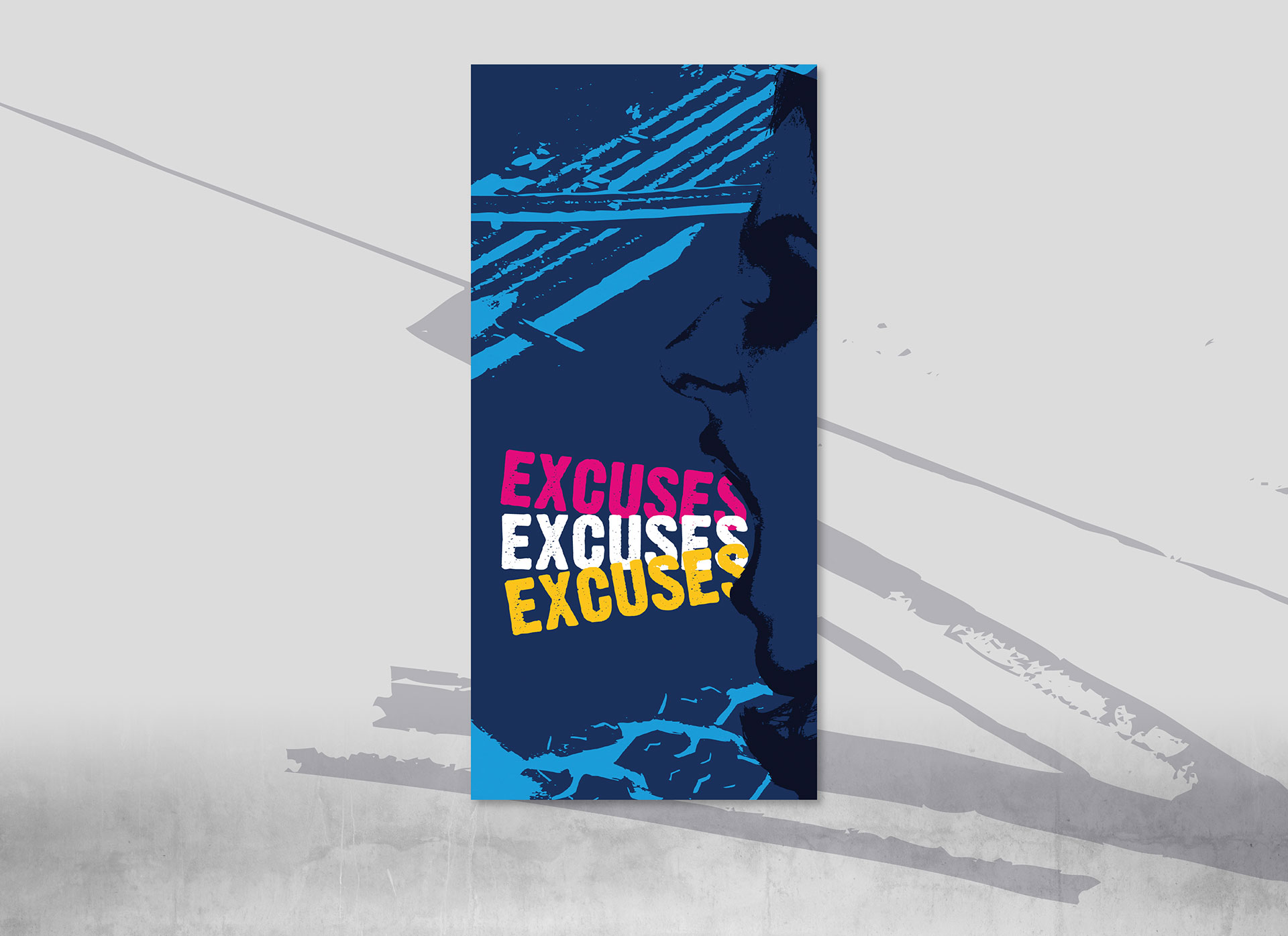 A young, grungy look was developed to attract the appropriate age range, something that wasn't teaching them too formally, but also held a feeling of seriousness. Strong messages combined with bright colours offest against blacks and greys.